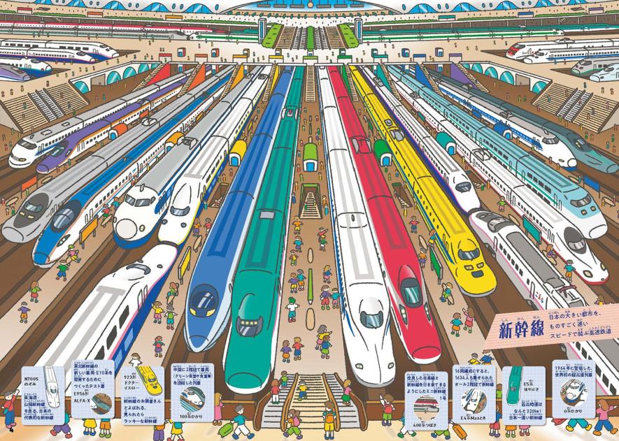 新幹線や特急列車はもちろん、貨物列車や寝台列車や地下鉄をはじめ、踏切やトンネルや転車台までたくさんのわくわくポイントが収録されています。