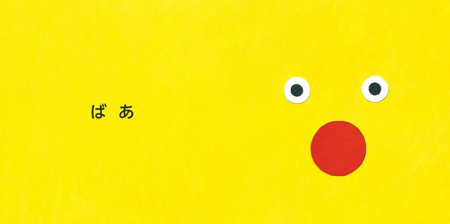 内容を少しご紹介してみよう。例えば、最初のページをひらくと、真っ黒の背景に「ぱち」っと目玉が一つ。次のページでは、目玉が「ぱち ぱちん」と二つに増える。そして次のページをひらくと…、「ばあ」というテキストに合わせて背景は鮮やかな黄色に変わり、2つの目玉と一緒に大きく開いた真っ赤な口が現れる!といった具合である。これはシンプルに楽しい。