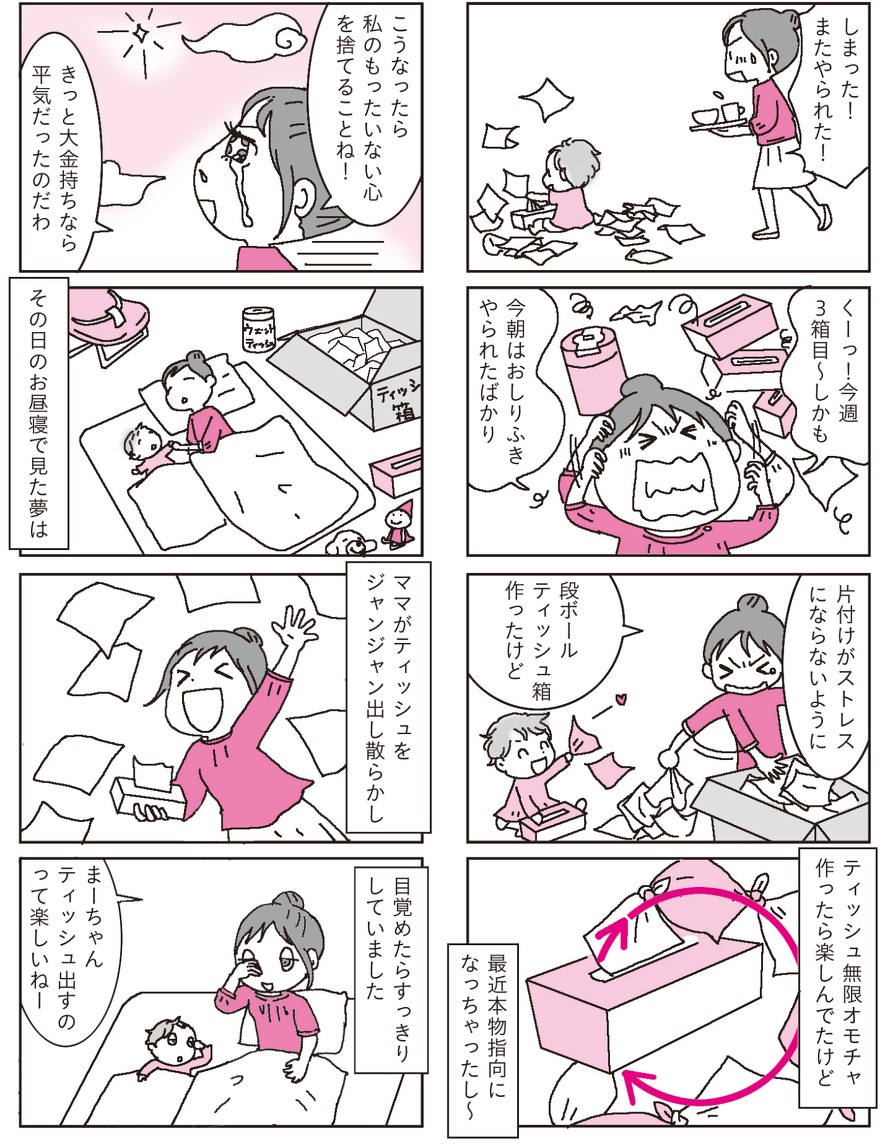 おすわりで遊ぶ赤ちゃんが出合うのが、この遊び! ティッシュ遊びです。