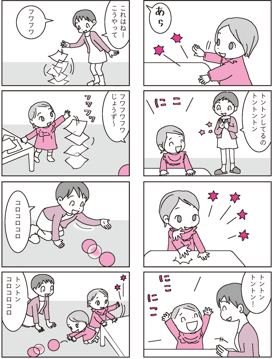 特別ためし読みの第9回は、「たっちの頃(10ヵ月~1歳3ヵ月)」から、「一緒にやろう、トントントン」です。