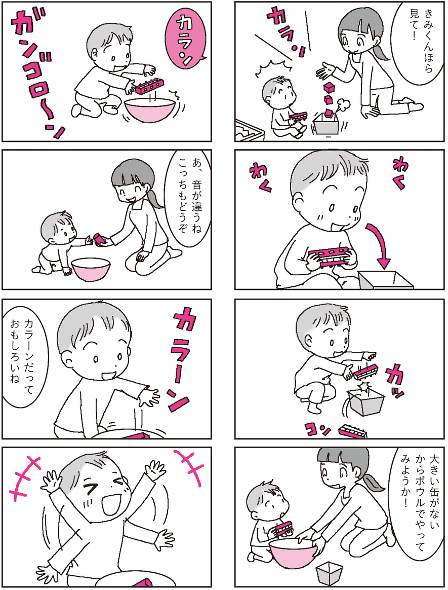 特別ためし読みの第10回は、「たっちの頃(10ヵ月~1歳3ヵ月)」から、「つまんでカラン!」です。