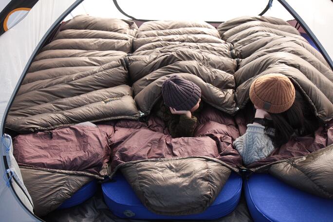 こいしさん:グースダウンを使用した本格的な寝袋です。耐久性があり、マミー型ながらもゆとりがあるため寝心地は抜群。さらに、両サイドのファスナーで複数の寝袋を連結できるところも大きな魅力。寄り添って眠ると寝袋がより温まり、子どもの安心にもつながります。