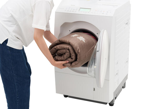 大型洗濯機で丸洗いできるからいつでも清潔。持ち運びに便利な収納袋付き。
