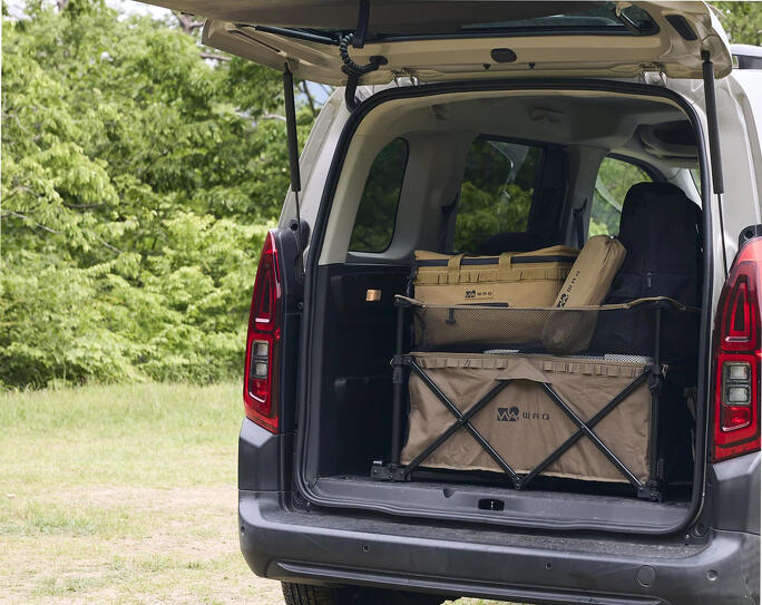 こいしさん:WAQ(ワック)は、新鋭の国内アウトドアブランドです。アウトドアワゴンに非常に力を入れていて、キャンプ場でWAQのワゴンを見かけることが増えています。新商品の『アウトドアワゴンDX』の特徴は、本体が収縮すること。本体が上に伸びることで、椅子やテーブルなどの長物にも対応し、最大178Lまで積載できます。さらに、タイヤ幅は9.5センチと非常に大きいため、段差にも強く、荷物を快適に運べます。