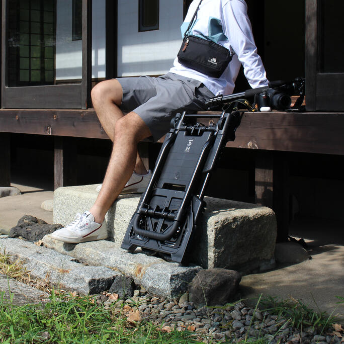 こいしさん:2輪と4輪の2WAYで使えるところも便利です。ロープワークを学べば、クーラーボックスだけでなく、さまざまなものを載せられます。シンプルでスタイリッシュなデザインも特徴で、ギミック好きな方や、カッコいいもの好きがとくにハマるアイテムです。