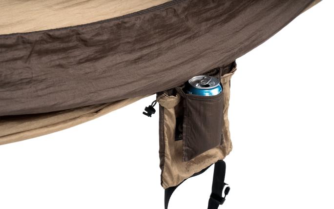 こいしさん:ハンモック本体に収納袋が一体化されたポケッタブルタイプで、収納袋を紛失する心配がありません。ハンモックを使っているときは、収納袋にドリンクなどを入れられます。別売りのストラップ(『Atlas™ Hammock Straps』)と組み合わせれば、初心者も簡単に設営できます。