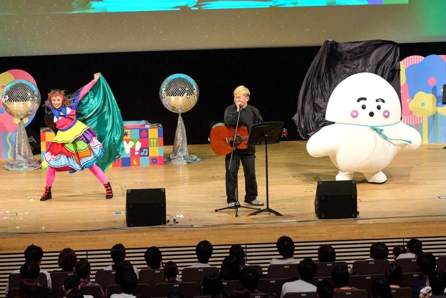 「シナぷりちゃん」と「にゅう」と「ぷしゅぷしゅ」、「ひーたんみーたん」やテレビ東京の藤井由依アナウンサーによる華麗なダンスで大盛り上がりの中、番組には欠かせないアーティストたちも続々登場します。「会場を海にしに来ました!」とさわやかな笑顔でステージに現れた「さかなのおにいさん かわちゃん」は、秋にぴったりな「さんまのサンバ」を熱唱。軽やかなリズムに、会場がウキウキしだす中、「こちょこチョウザメ」では、歌詞に合わせて、大人たちが赤ちゃんたちの脇をくすぐる場面もありました。