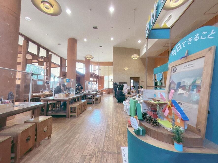 身長120㎝体重30kg&小学3年生以上なら、約400mの壮大な湖面飛行が楽しめる空の冒険「飛行おにのジップラインアドベンチャー」(体重制限あり。有料)に挑戦できます。子どもたちの好奇心を刺激し、五感を使って全身で遊べる「ムーミン谷のあそびのひろば」、ソフトブロックやおもちゃで遊べるキッズスペースや、ムーミンと北欧関連の本から絵本までが並ぶライブラリー カフェなど、室内施設が充実しているのも特徴です。