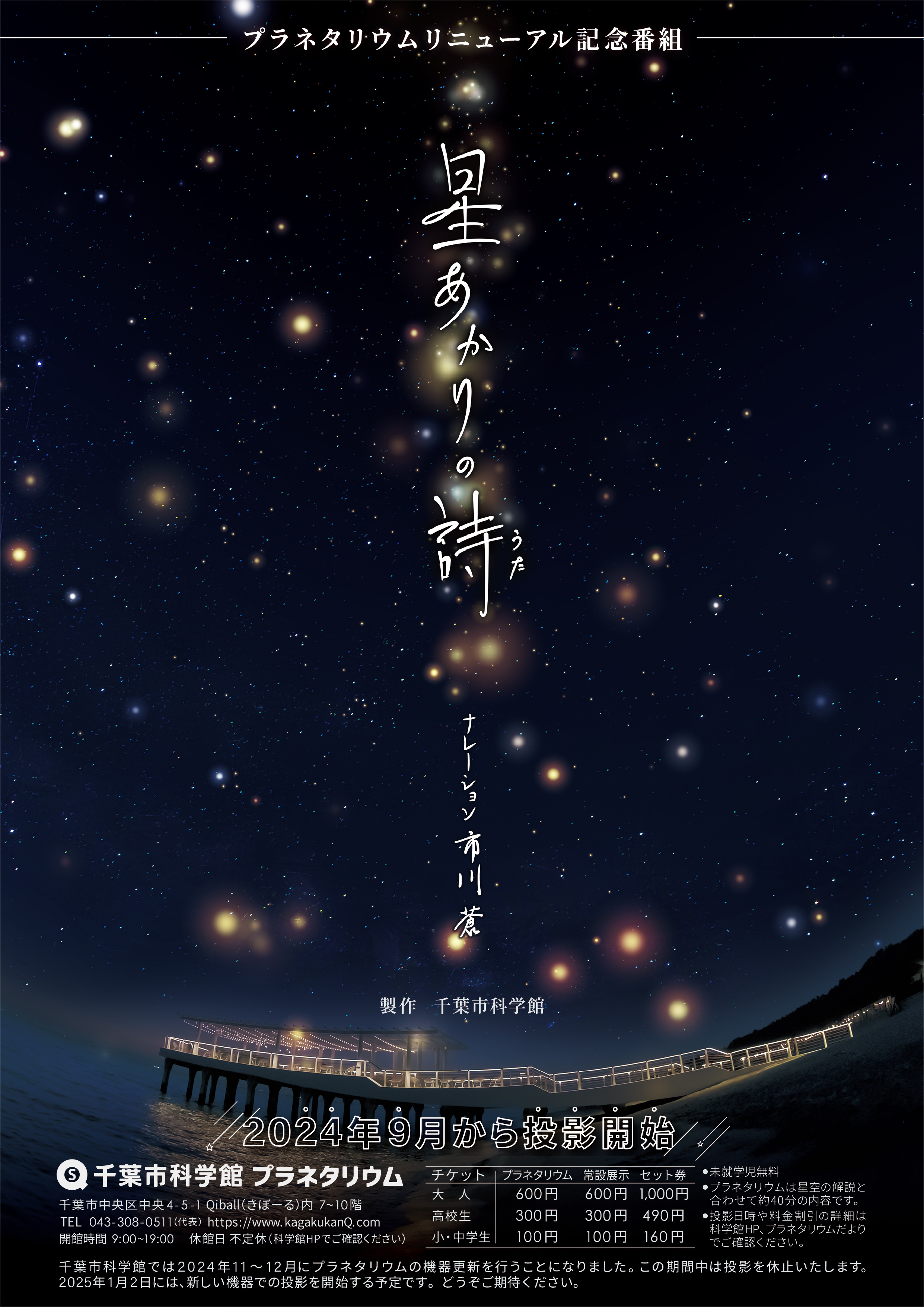 複合施設「きぼーる」の巨大な球体内部にあるのが、「千葉市科学館」が誇る千葉県最大の大きさのプラネタリウムです。2025年1月には投映機と周辺機器をリニューアル。天の川の構造も再現できる1億個の星空を映すことが可能になり、全天に投映されるデジタル映像を交えて、多彩な投映が行われます。リニューアル記念に製作された「星あかりの詩」は、春夏秋冬の星空をはじめ、千葉県内の名所を美しい映像とナレーションによってめぐる、「千葉市科学館」製作のオリジナル番組です。