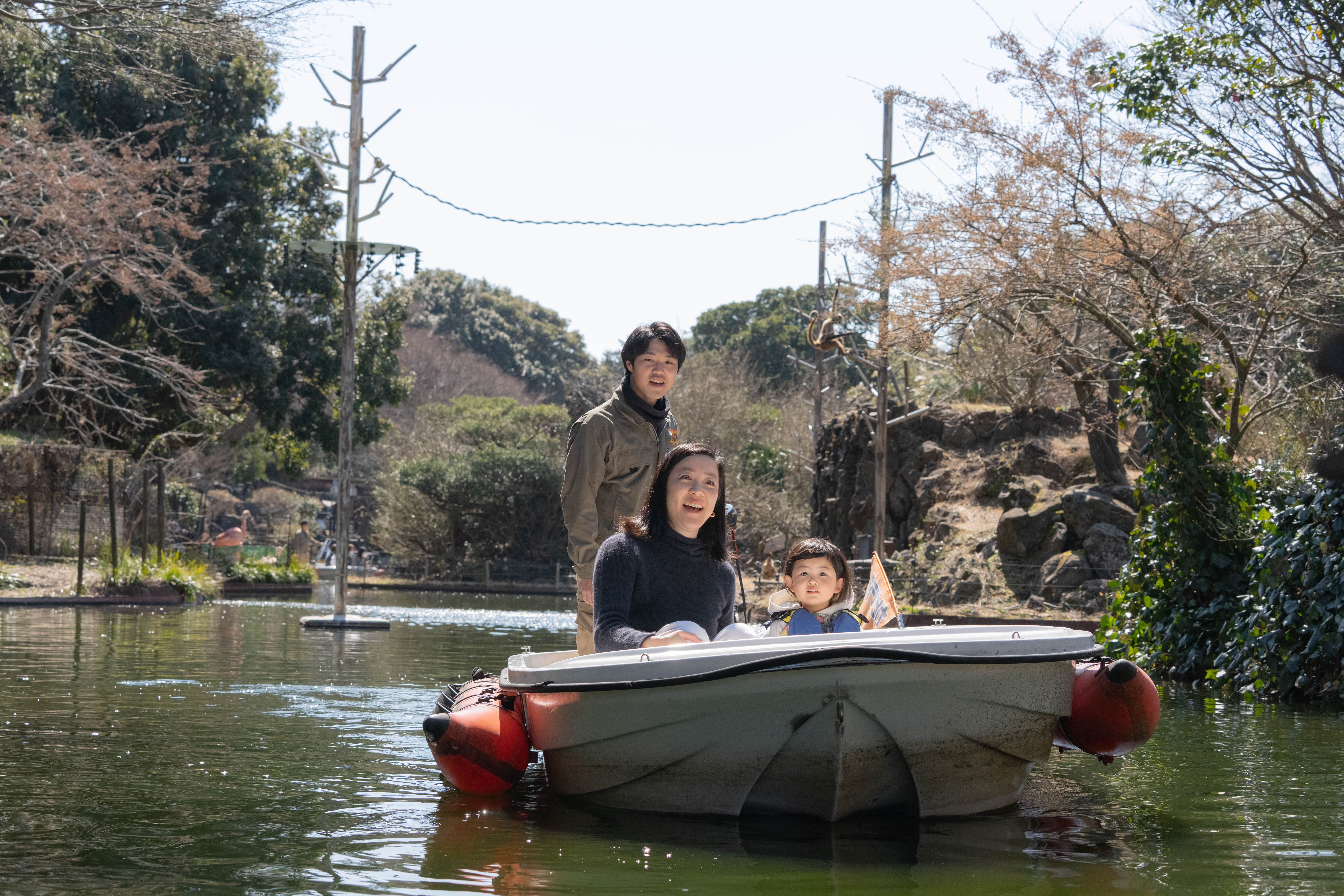 動物たちとの“距離感ゼロの体験”をいろんな形で楽しめます。目玉となるのは日本で唯一の展示方法、「アニマルボートツアーズ」(有料、2歳以下乗船不可)です。コースは2種類。ガイドを聞きながら池を1周し、動物を観察できる「ぐるっと1周コース」と、リスザルまたはワオキツネザルの島へ渡り、おやつあげ体験ができる「モンキー島上陸コース」があります。