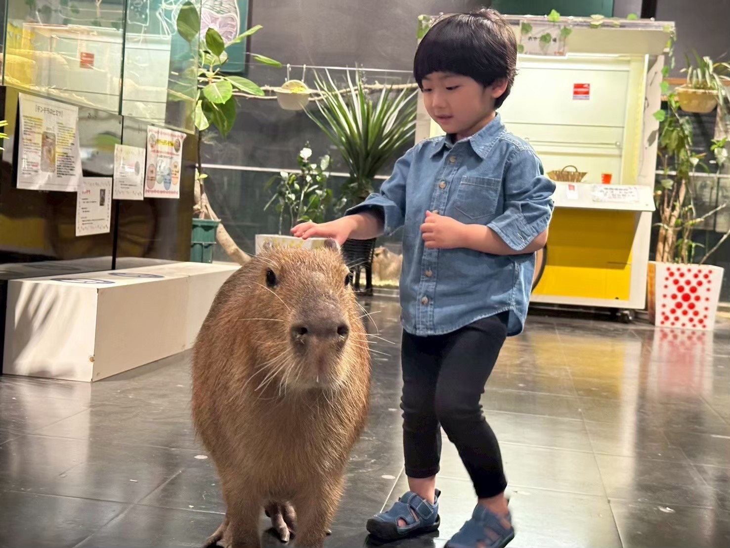 「KABAZOO(カバズ―)」は、雨の日でも遊べる屋内型動物園。体験プログラムが豊富で、一番人気のカワウソをはじめ、カピバラ、モルモット、秋田犬への「おやつあげ体験」(有料)から、フクロウを自分の腕に乗せる「フクロウ手乗り体験」(有料)まで、貴重な経験ができます。カピバラを至近距離から見たり、おやつ(有料)をあげたりできる1日2回の「カピバラのお散歩」、当日予約制で小型犬とふれあえる「犬のお部屋」(有料)なども注目です!