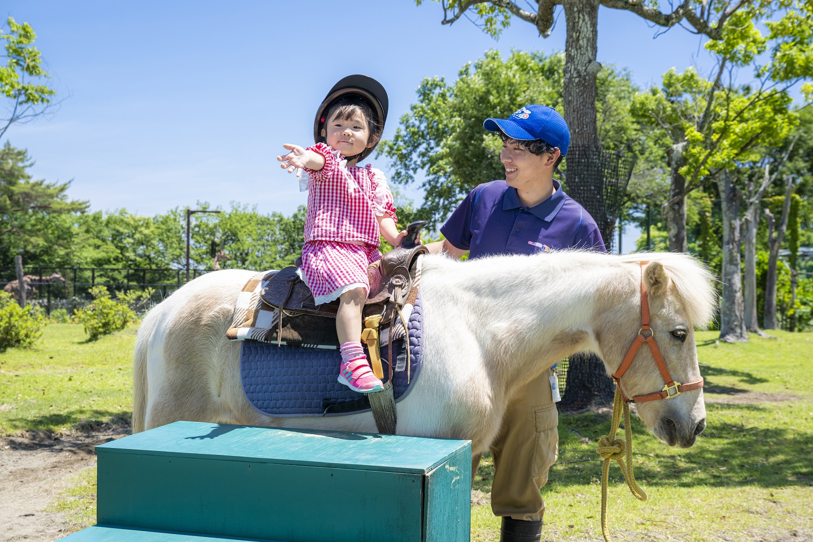 アフリカゾウ、アミメキリン、シロサイに接近し、おやつあげ体験と写真撮影ができる特別ツアー「サファリWOW!ツアー」(有料、WEB予約制)は、家族で楽しめる大人気企画です。「ふれあい広場」では、カバにおやつをあげられる「カバフィーディング」(有料)や、ウサギ・モルモットとふれあえる「フレンドハウス」(要整理券)を実施。また、世界一小さな馬の仲間、ミニチュアホースと一緒に散歩できる体験(有料)もホースキャンプ内で行えます。