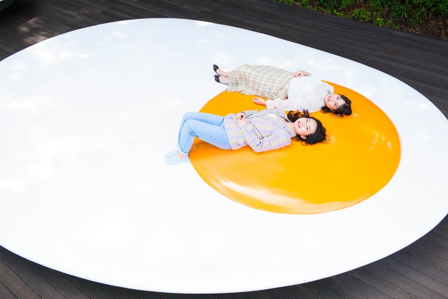 屋外展示場にはユニークな目玉焼きのオブジェも 画像提供:彫刻の森美術館