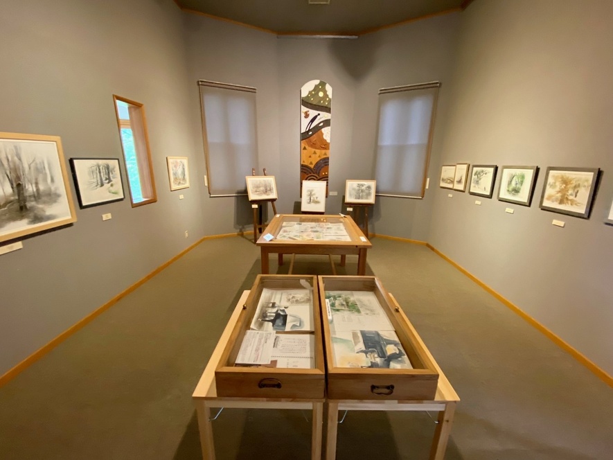 展示室。絵本の原画や絵画など年4回企画を変えて展示