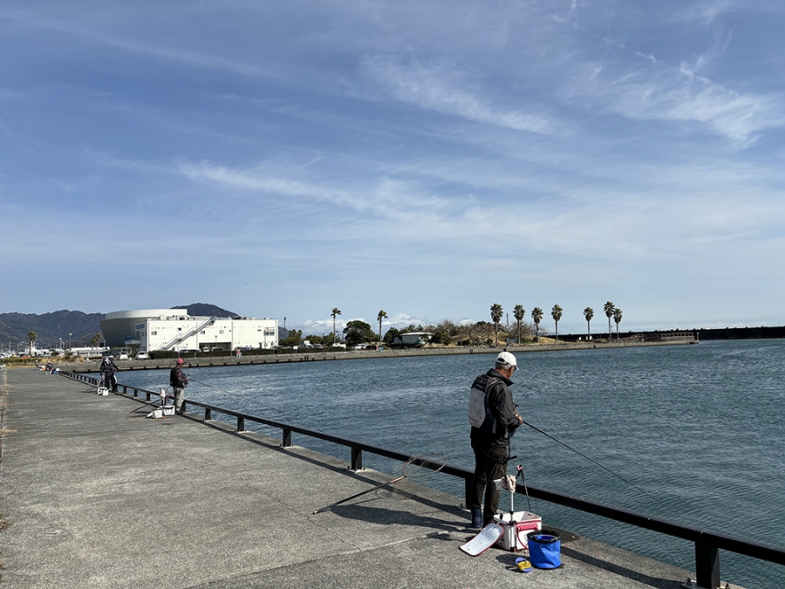 伊豆の街並みと山々を見渡せる釣りスポット。長さ260m・幅14mの堤防で、ゆったりと釣りを楽しむファミリー層も多く訪れます。有料レンタルの貸し竿セットにはエサ・仕掛け・バケツが付き、初期指導も受けられます。さらに、初心者でも楽しめるように、安全管理のために後方待機するスタッフが釣りをレクチャー。初心者・ジュニア向けの各種釣り教室(事前予約制)が、定期的に無料で開催されています。
