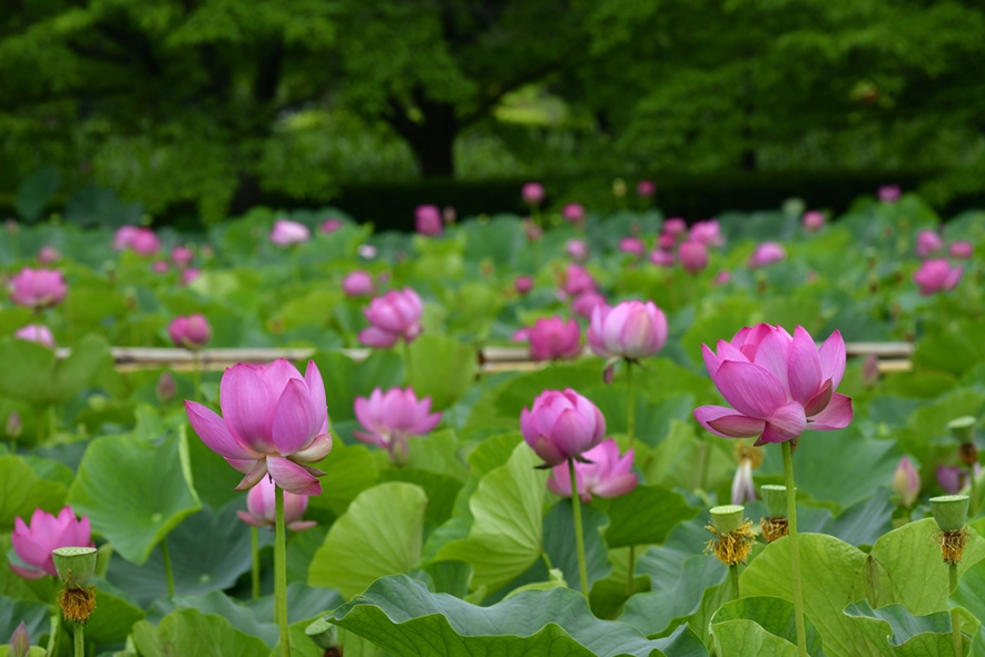 後藤有紀さん:ここで見られるハスの中でも特に見てほしいのが、「行田蓮(ぎょうだはす)」です。行田市の天然記念物にも指定されている品種です。見た目は普通のハスように見えますが、なんとこのハスは、1400年~3000年前のものだといわれています! 公園の近くにある公共施設の建設工事の際に、土の中から出てきた種子が自然に発芽して、再び咲いたそうです。土の中でずっと眠っていたハスが、数千年の時を越えて花を咲かせるなんて、ロマンがありますよね。そんな古代蓮に思いを馳せながら、早朝のお花散歩を楽しんでみてはいかがでしょうか? 見頃は6月下旬から8月上旬、夏休みの自由研究の課題として、ハスについて学ぶのもよいですね!