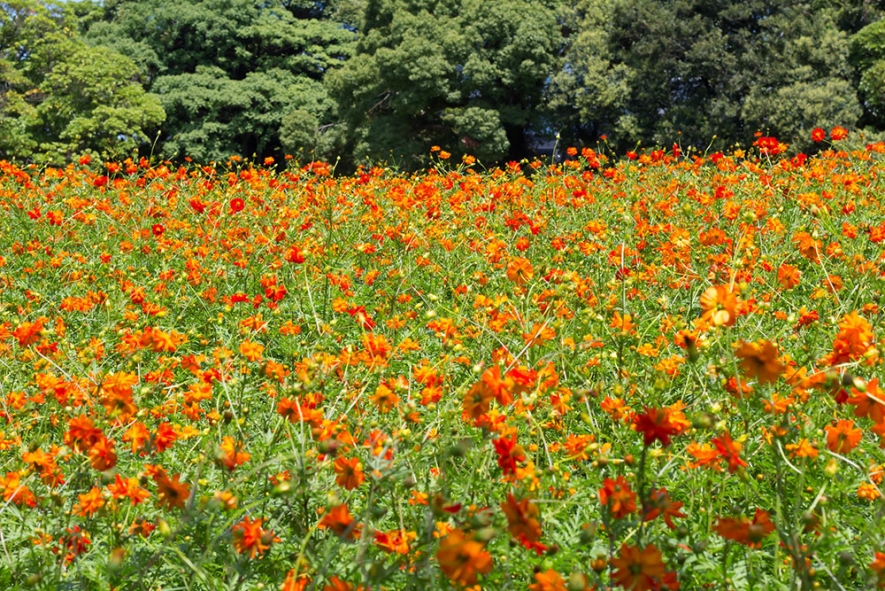 後藤有紀さん:コスモスといえば秋ですが、ここではひと足先に7月下旬から9月上旬ころまでキバナコスモスが楽しめます。お花の少ない季節にありがたいスポット。アクセスの良さから、夏に東京に訪れる方には必ずおすすめする場所です。元気に咲き誇るビタミンカラーの花々は、真夏の暑さも吹き飛ばしてくれるほどの可愛らしさがあります! 立ち並ぶビル群を背景に、無機質な都会とメルヘンなお花畑という対象的な一枚を、ぜひ写真に収めてみてくださいね。園内には「潮入の池」という東京湾から海水を引き込んでいる池もあり、海水魚も棲んでいるそう。花畑と水辺を楽しめるまさに都会の中のオアシスです。江戸時代の大名庭園の趣を感じながらのんびりとした時間を過ごせます。