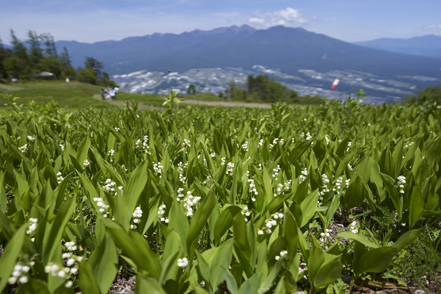 後藤有紀さん:ゴンドラを降りると、入笠すずらん山野草公園に到着。まず目の前に現れるのは壮大な八ヶ岳を背景に一面に咲き誇る20万本のドイツスズランです! 周囲はスズランの甘い香りに包まれ心が癒されます。10分ほど歩くと湿原があり、そこにはドイツスズランより小ぶりで控えめですが、自然の中で咲く100万本の日本スズランを見ることができるので、ぜひチェックしてみましょう。入笠山は日本有数のスズランの群生地として有名です。ドイツスズランは5月下旬から6月上旬、日本スズランは6月上旬から下旬までが見頃です。スズランの季節が終わっても、山野草公園や湿原では8月末ころまで、標高の高いところにしか咲かない高山植物など、身近では見られないさまざまな山野草に触れることができるのも魅力的。花の種類が多いので宝探しをしているように楽しめますよ。