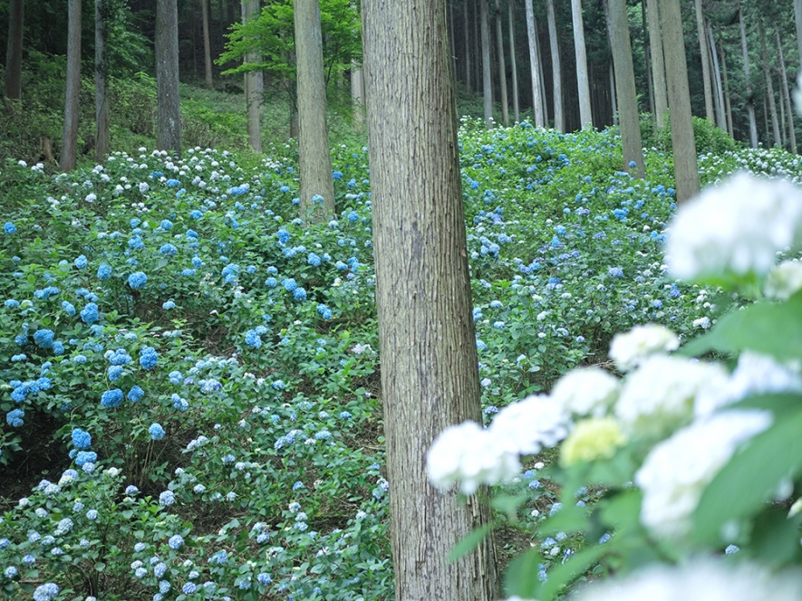 後藤有紀さん:約1万株ものアジサイが山間を埋め尽くすように、咲き乱れています。木立の中をしっとりとアジサイに染まる幻想的な風景、これを一人で造られたとは感動ものです! 整備された山道を歩きながら観賞するので、ちょっとした山登りの雰囲気も味わえますよ。歩きやすいスニーカーでお出かけくださいね! 山間部にあるため、アジサイの見頃時期が6月下旬から7月上旬までと、平地に比べて少し遅くまで見られるので、見頃時期を逃した方や、まだまだアジサイを楽しみたい方も、ゆっくりと計画を立てられます。