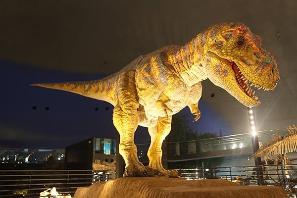 さらに、ティラノサウルス科復元ロボットが出現! 全長約6mのロボットは最新の学説に基づき、羽毛やウロコなどが再現され、匂いを嗅いたり、大声で吠えたりします。毎月内容が異なるワークショップも毎日2回開催。詳細は公式HPで確認しよう。