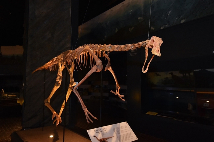 埼玉・長瀞町(ながとろまち)の「自然の博物館」では、恐竜時代の地層をテーマの一つとし、埼玉県で見られる岩石・鉱物・化石・地層などをズラリと展示。かつてアジアに生息したガリミムス ブラツスのレプリカは、館内唯一の恐竜の全身骨格標本です。長い脚&首、大きな目が特徴で、映画『ジュラシック・パーク』シリーズにも登場しました。