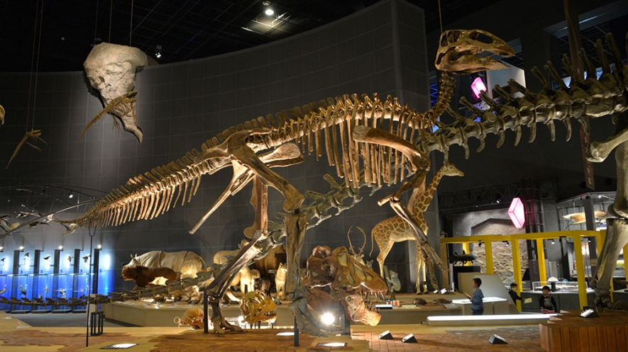 恐竜化石の一大産地・福井県勝山市にあり、世界3大恐竜博物館ともいわれています。常設展示室は、1階「恐竜の世界」「地球の科学」、2階「生命の歴史」の3つのゾーンから構成。4,500㎡の広大な空間には、恐竜の全身骨格標本50体をはじめ、千数百もの標本や大型復元ジオラマなどを見学できます。
