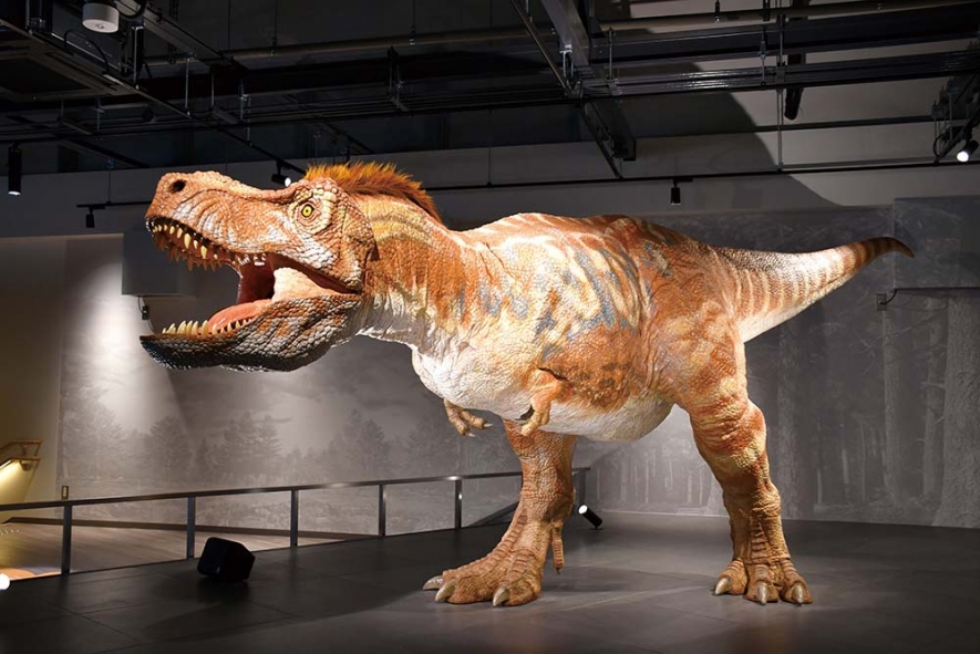 福井県勝山市で発見された6種の新種恐竜の一つで、草食恐竜のフクイサウルス・テトリエンシスの全身骨格標本を展示。ほかの新種恐竜5種も観察してみましょう。「恐竜の世界」ゾーンのティラノサウルスロボットは、動き方や吠え方までリアルで大迫力。中国四川省の中生代ジュラ紀の情景を再現したジオラマや200インチの対面スクリーン「ダイノシアター」では、恐竜時代へタイムスリップした感覚に♪