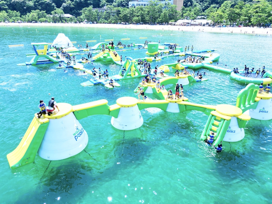 日本最大級の海上アスレチックが、24年夏も淡路島・洲本市(すもとし)大浜海水浴場に大幅グレードアップして登場! アトラクションが23年より11種も増え、計43種になります。昨年お目見えした「水上空中ブリッジアトラクションPeakz(ピークズ)」もカスタマイズされて再登場。IAAPA(世界最大のエンタメ・アミューズメント施設の団体)にて、業界最高の新アトラクションを称えるブラスリング賞を受賞した、国内唯一の水上アドベンチャーを親子で体験してみませんか?