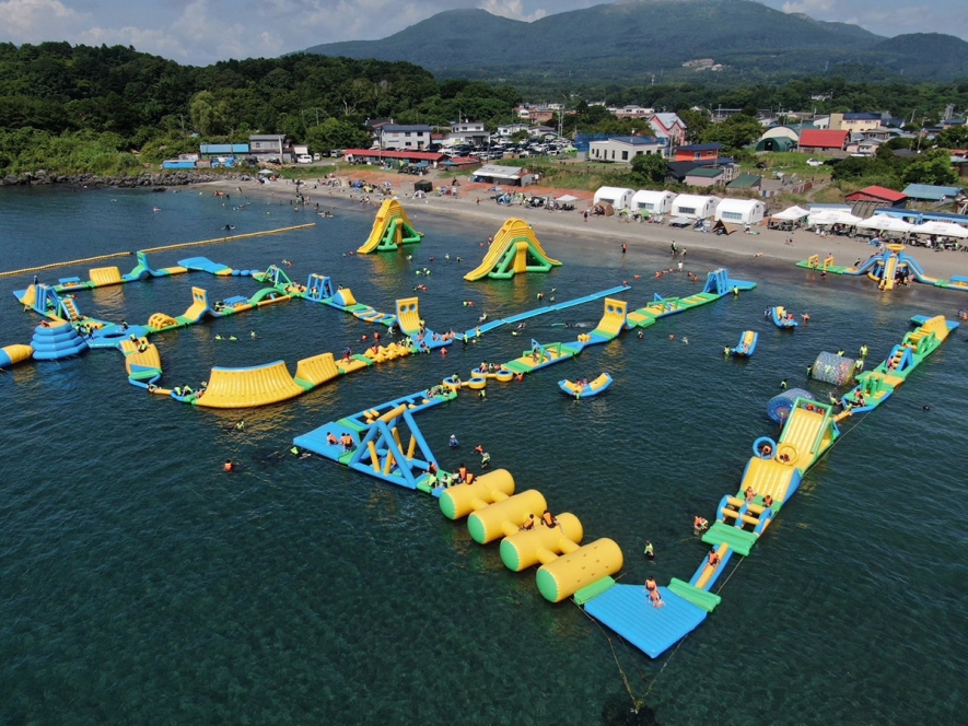 住所:北海道伊達市向有珠町 有珠海水浴場内/期間:7月13日(土)~15日(月祝)、7月20日(土)~8月25日(日)/時間:平日と7月13日(土)~15日(月祝)は9:00~16:00、土曜・日曜・祝日とお盆期間8月10日(土)~16日(金)は8:30~17:00、8月25日(日)8:30~15:00(開園時間から各30分後に全エリア利用可能)※潮の干潮満潮によりスタート時間が遅れる場合あり/定休日:公式HPでご確認ください※荒天候時は中止/年齢(身長)制限:幼稚園児以下はエリア限定(小学生以下は保護者同伴。保護者1人につき1人必須)/時間制限:なし