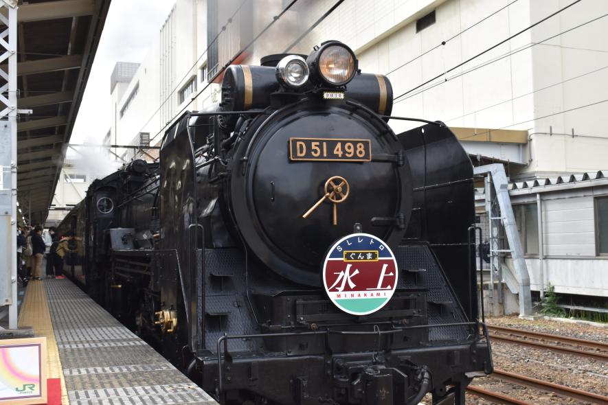 「SLぐんま」では、「デゴイチ」ことD51-498号機と、「シロクイチ」ことC61-20号機の2両の機関車が活躍中。連結する客車は、12系(車両が青色)と旧型客車(茶色)があり、旧型客車の列車名が「SLレトロぐんま水上(みなかみ)」になります。