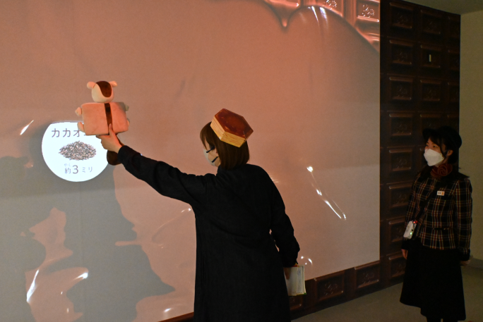 そんな夢をデジタル技術で再現した壁から流れてくるチョコレートは、このコースの目玉です。手をかざすとガーナのおいしさの秘密が現れますよ。(ロッテ担当者より)