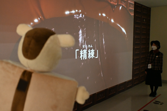 アテンダーのお姉さんが魔法をかけると壁に製造工程が現れます。