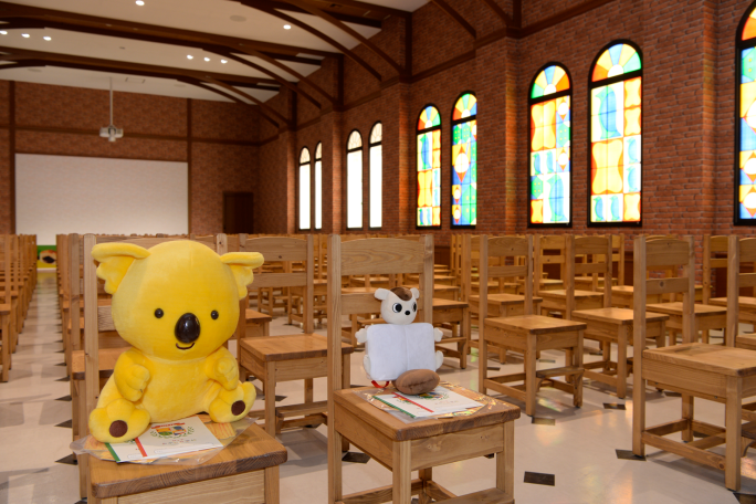 スペシャルゲストのコアラのマーチくんと一緒に授業を受けました。