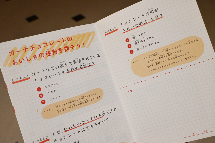 工場見学の教科書を配っているのも浦和工場の魅力です。教科書にはおいしさの秘密のクイズが書かれていて、見学でその答えを探し、最後に答え合わせをするという流れが学びにつながります。見学の工程も教科書に載っていたり、写真を貼れる修了証書も付いているので、見学後も思い出や記念として振り返れる教科書になっています。(ロッテ担当者より)