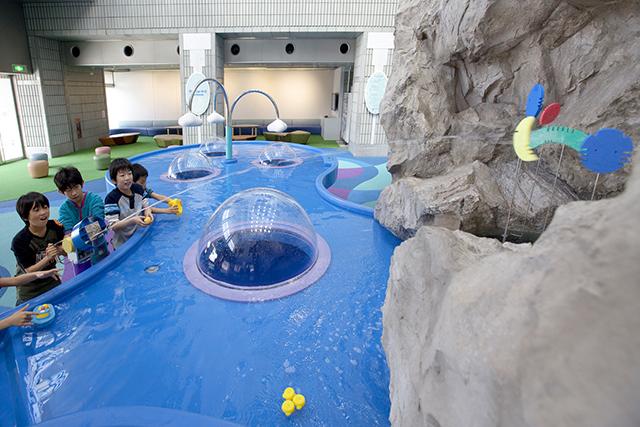 水の不思議と大切さを科学の視点で紹介し、水と水道への興味を深められる入場無料の体感型ミュージアム。1階にある人気エリアの「アクア・パーク」では、もぐり込んで中から顔を出せるプールや、水鉄砲などで楽しく遊んじゃおう♪