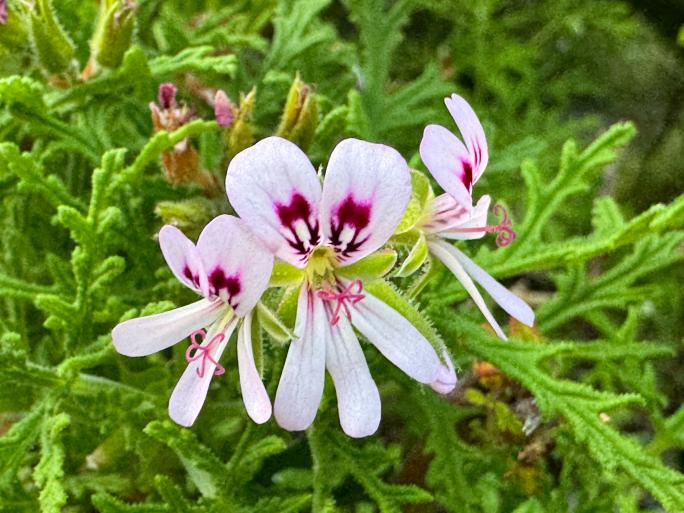 ほかにも、紫系の色で小さな花が美しいパイナップルや、バラの香りが特徴のハーブ、ローズゼラニウムなども夏を彩ります。1階「Farm Labo(ファームラボ)」では水耕野菜を栽培し、2階に併設のカフェで提供するサラダに使用しています。