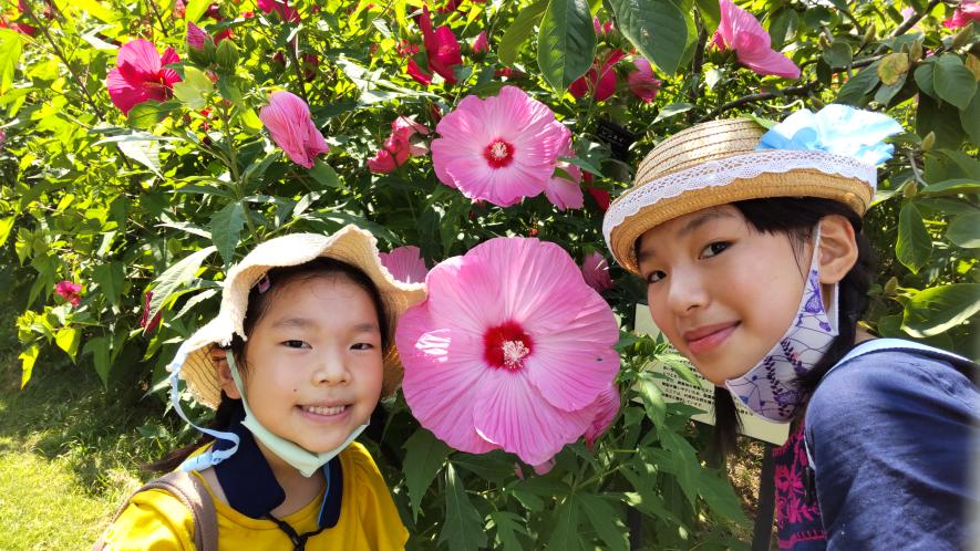 園内では約1,300品種のバラ園をはじめ、彩り豊かな花々を四季を通じて楽しめます。6月下旬から10月までは、タイタンビカスが見頃ですよ。また、広大な芝生広場でピクニックも楽しめるので、子ども連れにぴったり♪