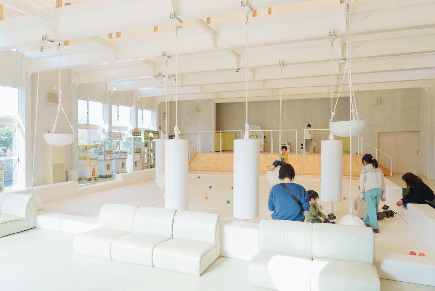 親子で利用したいのは「道の駅 保田小附属ようちえん」(旧幼稚園内)の「プレイカフェ」。遊戯室のすべり台やサンドバッグで遊べて、ソファではパパ・ママがゆったり見守ることができます。同じ空間には小さなカフェもあり、鋸南町(きょなんまち)の食材を生かしたスムージーが人気です!