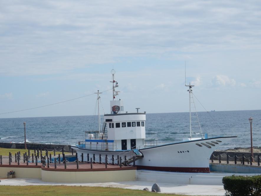 自由に遊ぶことができ、小さなお子さん用のすべり台やブランコもある芝生広場を併設した道の駅。かつて漁業で栄えた千倉を象徴するのが、第一千倉丸のモニュメントです。サバ・サンマ漁に使われていた70トン級の漁船のレプリカが広場に設置され、展望デッキになっています。