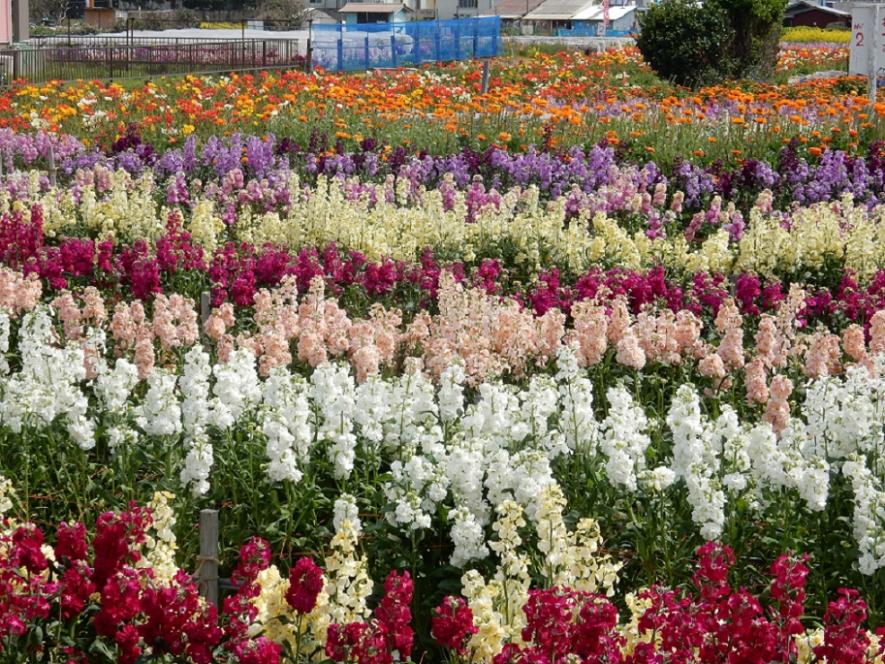 グルメでは、この地方で「大きい」を意味する、通常の1.5倍の大きさの「てっぱつアジフライ」が名物。また、「潮風王国」周辺では路地花栽培が盛んで、花の季節の1月下旬~3月下旬には花畑の散策や花摘み(有料)が楽しめますよ。