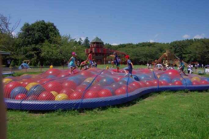 メルヘンな雰囲気のなか約150種類10万株の季節折々の花々を愛でながら全身を使って遊べる、5つのゾーンで構成された総合公園です。「ワンパク王国ゾーン」には、爽快感たっぷりの大すべり台とロープスライダーなどを併設した大型遊具「ワンパク城」や、大小のカラフルなボールの上でとんだり跳ねたりを楽しめる「ワンパクボール島」、体力にあわせて4つのコースが選べる「森のアスレチック」などがあり、心ゆくまでからだを動かして遊べます。「メルヘンの丘ゾーン」は、童話作家H.C.アンデルセンが活躍した1800年代のデンマークの牧歌的風景が再現され、ほっこり癒してくれます。をほっこり癒してくれます。ほかにも、「自然体験ゾーン」では生き物や植物の観察、「花の城ゾーン」ではアンデルセン童話をイメージしたオブジェや遊具遊び、「子ども美術館ゾーン」では染め物や陶芸、機織りなどさまざまな創作体験を開催。きっと思い出に残る休日になりますよ!