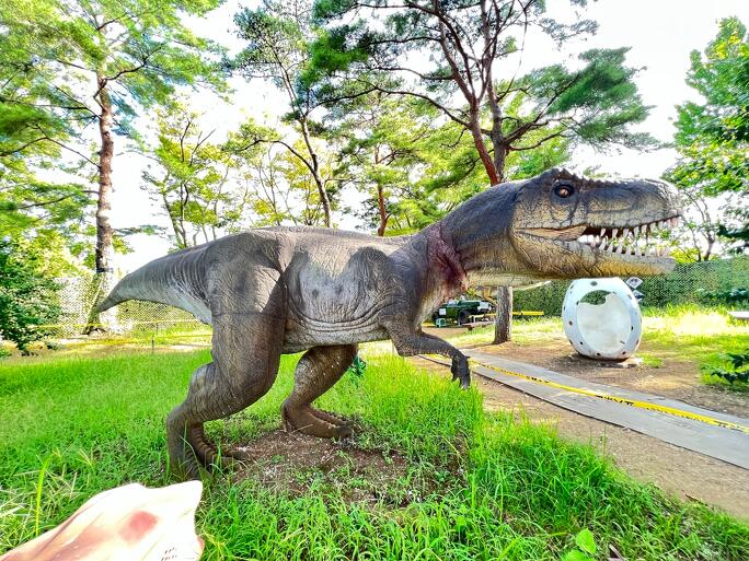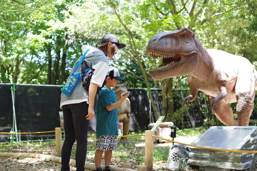 山倉ダムの湖畔に広がる、緑あふれる体験型レジャーパークです。一番人気は「ゴーカート」。国内トップクラスを誇る約1.5kmの林間コースを親子で走り抜けます。小学校4年生から高校生は、講習を受けてライセンスカードを取得すると、1人乗りカートを運転できますよ! ほかにも、大迫力の恐竜世界を体感できる「大恐竜ランド」や、幼児に人気の「アニマルカップ」など楽しいアトラクションが盛りだくさん。夏には、水あそびを楽しめる「ジャブジャブプール」も人気です。天気がくずれても、屋内施設「アソビングビレッジ」の大型遊具で遊んだり、絵本ライブラリーでのんびり過ごしたりできるので安心ですね。ボールの無料貸出や、テントのレンタルサービス(有料)もあり、芝生で休憩をとりながら1日中たっぷり遊べます。