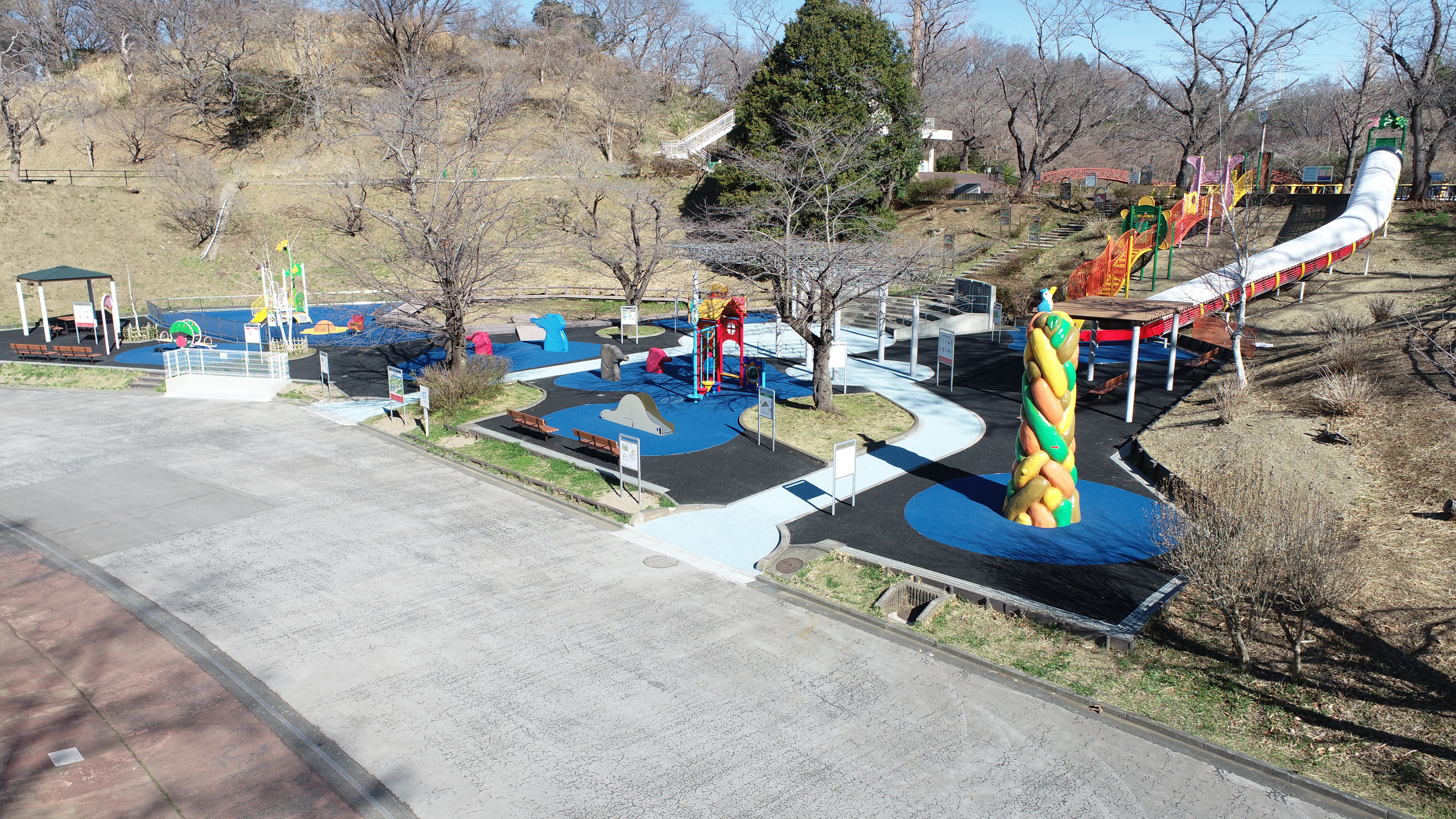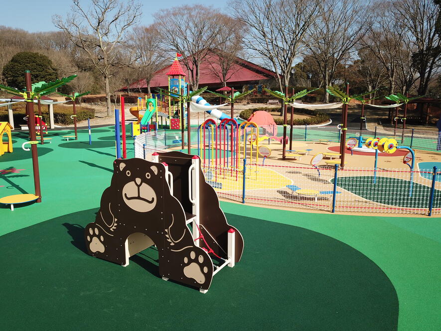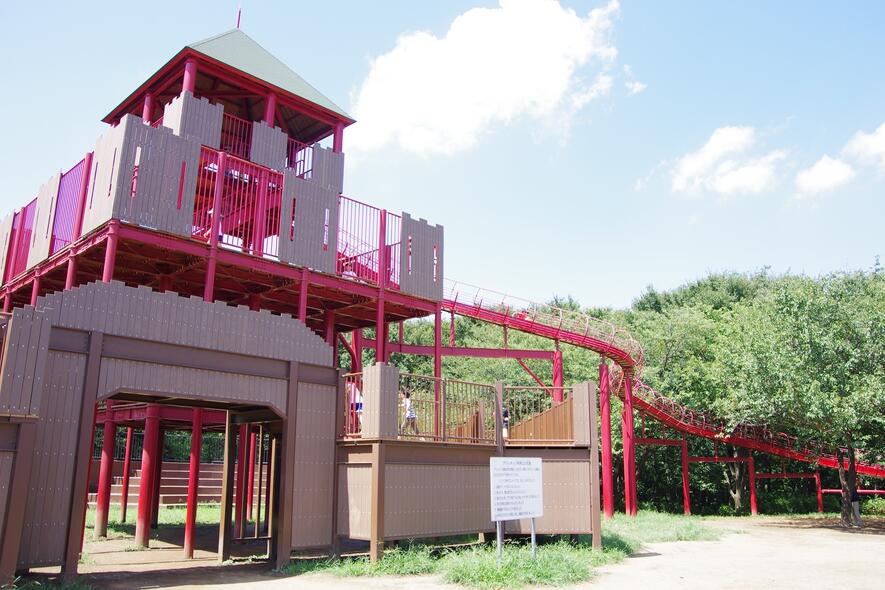 広さ100ヘクタールの広大な自然に囲まれた遊び場は見どころ満載。ふかふか素材の地面にバラエティに富んだ遊具を設置した「すくすくアイランド」は、0〜3歳、3〜6歳、6〜12歳でエリアが分かれているため、低年齢の子どもも安心して遊べます。隣接する「めいろ」を親子で楽しく通過すると、横浜市一長い「115mローラーすべりだい」に到着。6歳未満は大人が後から離れて付き添って滑りましょう。ほかにも、3月中旬から10月中旬までオープンの親水施設「せせらぎ」や、うさぎやモルモットと触れ合える「こども動物園」、アウトドア体験ができる「野外炊事場」や「バーベキュー場」などお楽しみがいっぱい。広大な自然のなかで充実した一日を過ごせます。