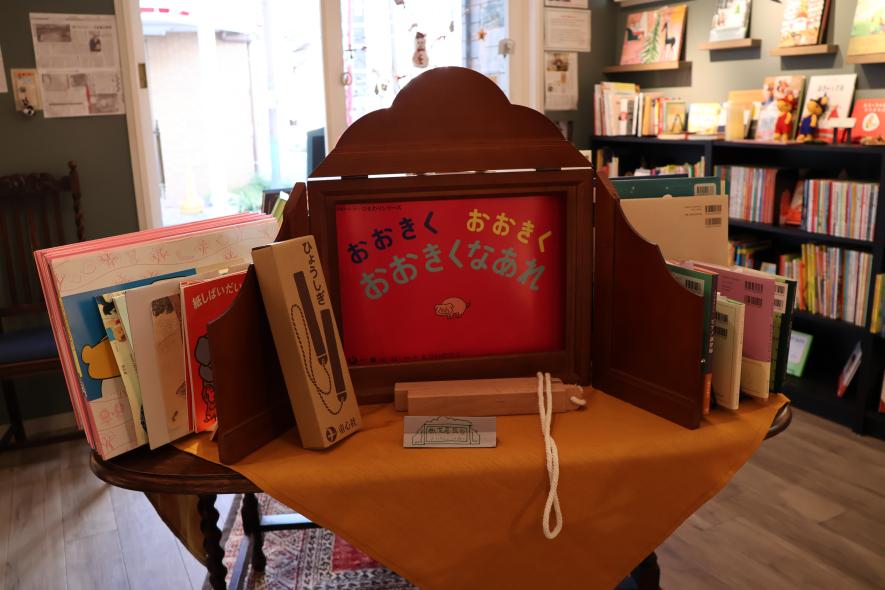 また絵本だけでなく、暮らしを豊かにする生活陶器や、紙芝居など多種多様な品物が置かれている。紙芝居は、子どもや孫へのプレゼントに買われていく方も多いのだとか。