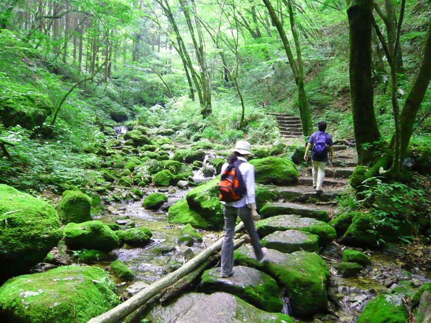子どものペースに合わせて無理なくハイキングを楽しめる御岳山。標高929mの山頂付近までケーブルカーを利用できるため、気軽にチャレンジできます。御岳山の魅力といえば、苔の緑と清流のコントラストが美しい「ロックガーデン」。まるで絵本の世界に入り込んだかのような景色は必見です。飛び石を渡ったり、水の流れを観察したりと、子どもたちは好奇心いっぱいに自然と触れ合えます。足元が滑りやすいので、滑りにくい靴を履いていきましょう。コースを進んでいくと「綾広の滝」があり、マイナスイオンを浴びながらリフレッシュできます。