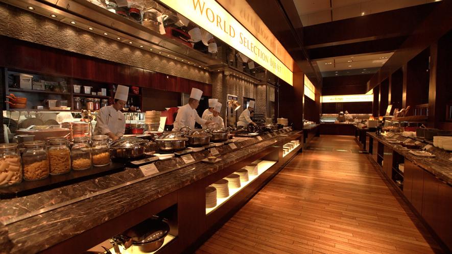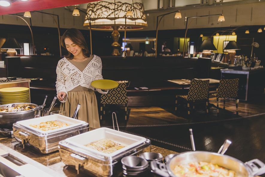 ホテルには9つのレストラン&バーがありますが、ブッフェが楽しめるのは4階にある「カジュアルダイニング ザ・テラス」です。特定の国や地域の料理をテーマにした国際色豊かなブッフェを展開することが多く、大人にも目新しい料理が並びます。常に時間制限なしなので、子連れでもゆっくりと食事を楽しむことができるのも魅力です。5歳以下の子どもは大人1名につき2名まで無料になるのでお得です。