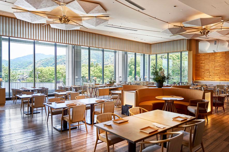 2階にあるカフェレストラン「ル・タン」は、開放感あふれ、クラシックモダンなインテリアながらも、カジュアルで誰もが心地よく食事を楽しめる雰囲気に満ちています。洋食をメインに子どもにも人気のパスタやカレー、スイーツといったメニューを用意し、親子3世代で楽しめると評判です。名物のローストビーフや天ぷらなど、目の前で仕上げてくれるメニューや季節の食材を使ったメニューが並びます。ローストビーフは、シンプルな味付けながら旨みが凝縮されて絶品です。もちろんおかわり自由!京都産の食材を使った季節の味覚も見逃せません。メニューは季節によって変わるので、最新情報はホームページで確認を。