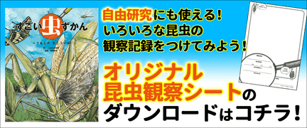 このページでは『すごい虫ずかん』の【オリジナル昆虫観察シート】がダウンロードできます。