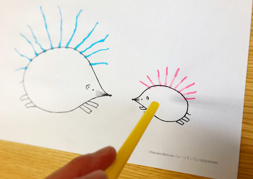 はりねずみのおやこに、好きな色のハリをはやしてみよう!