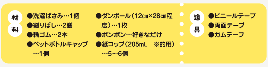- エコ素材:ペットボトルキャップ/割りばし/紙コップ